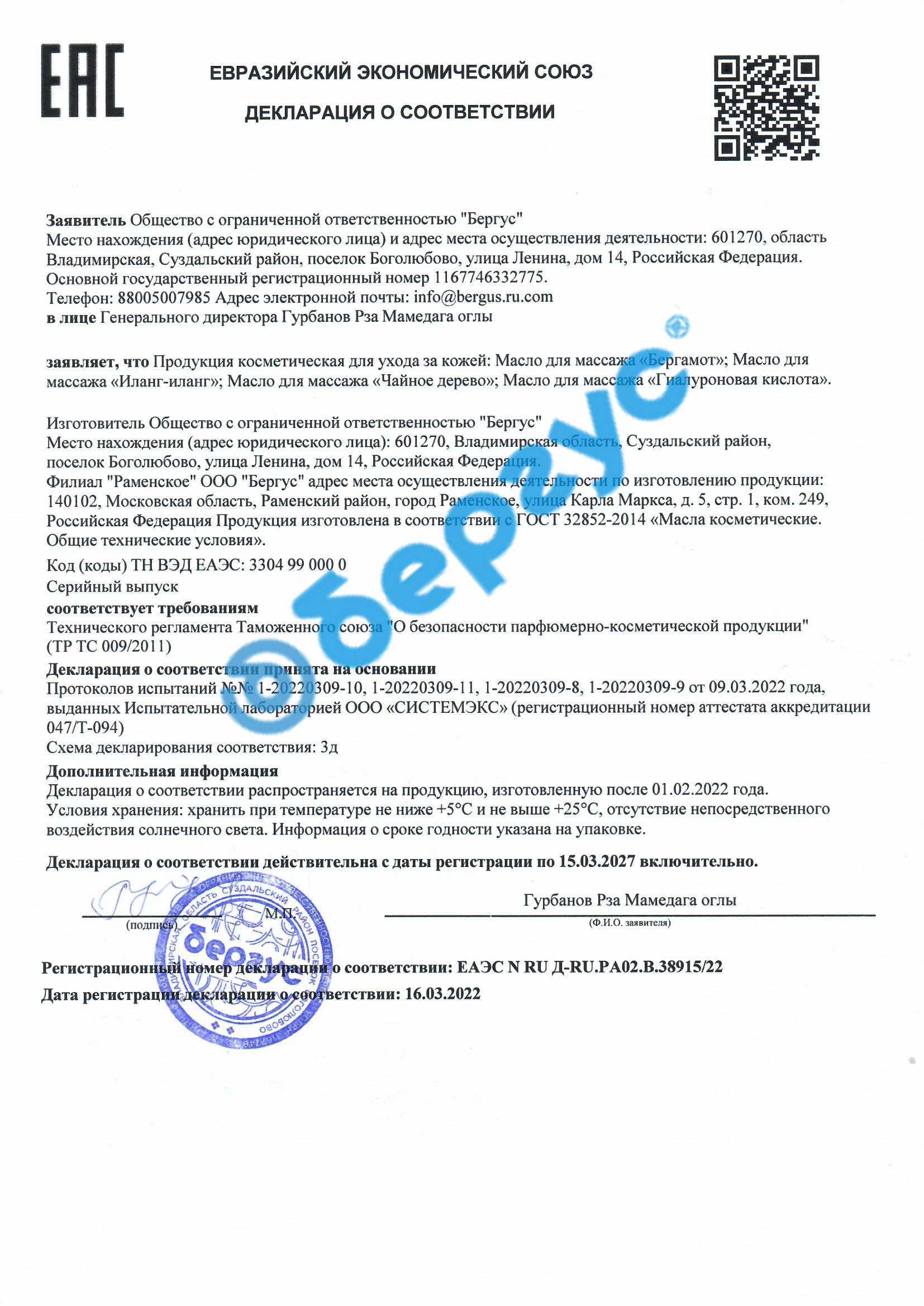 Масло для массажа